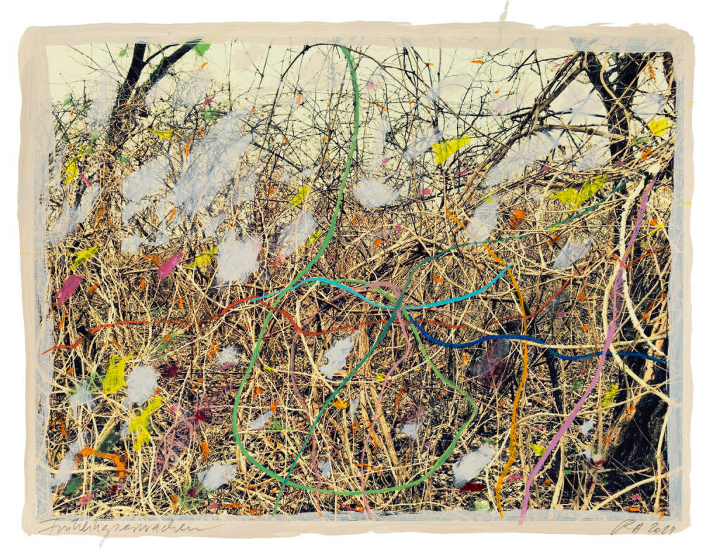 Regina Anzenberger Roots & Bonds V, 2016-2017 mixed media, photographic pigment print on Hahnemuehle PhotoRag Ultra Smooth, mounted on archival carton, acrylic painting, framed, museum glass, 70 % UV-protected (sold out), for the edition of 5 + II: pigment print on Hahnemuehle PhotoRag Ultra Smooth, not framed, 100 x 130 cm