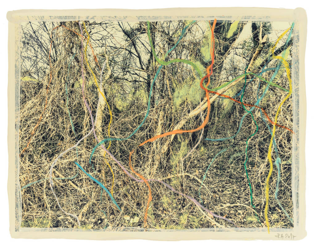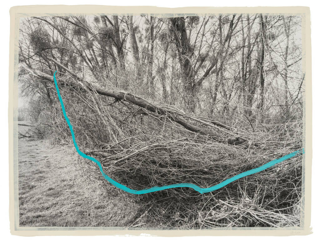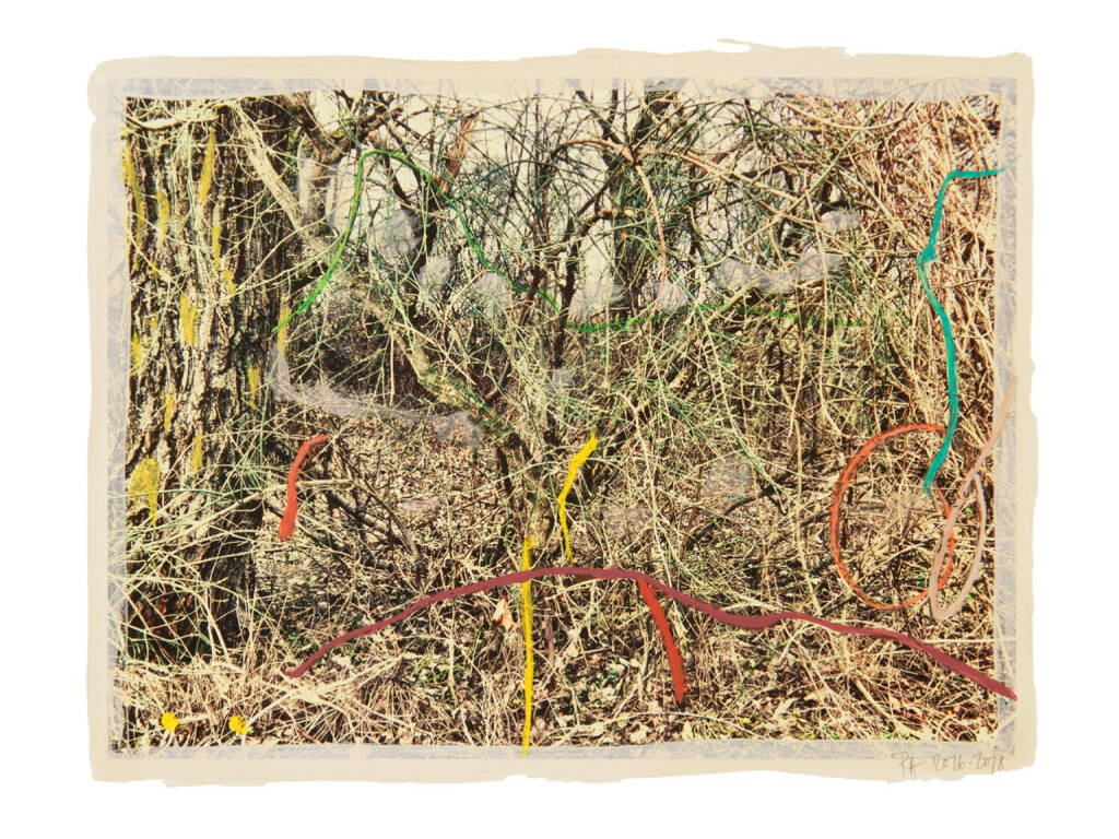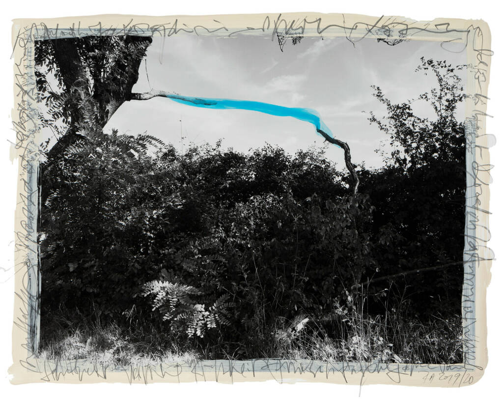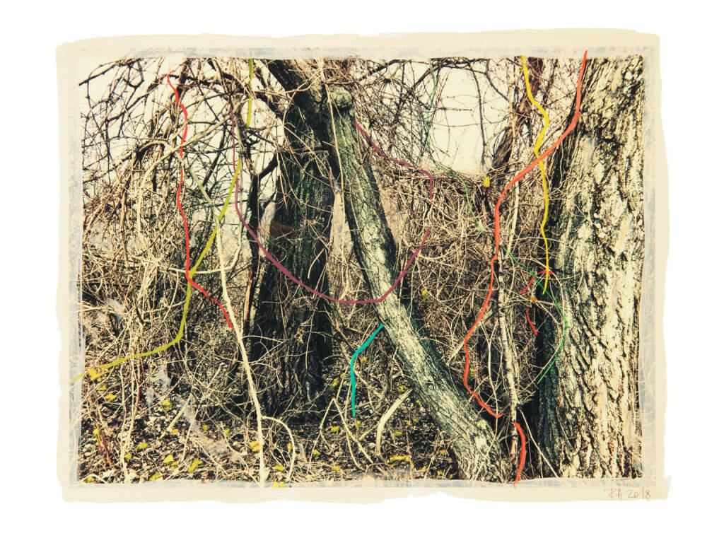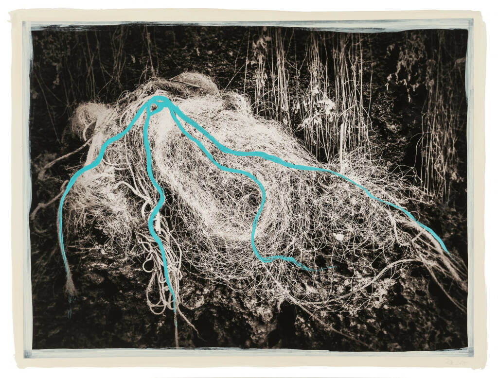 Regina Anzenberger Roots & Bonds V, 2016-2017 mixed media, photographic pigment print on Hahnemuehle PhotoRag Ultra Smooth, mounted on archival carton, acrylic painting, framed, museum glass, 70 % UV-protected (sold out), for the edition of 5 + II: pigment print on Hahnemuehle PhotoRag Ultra Smooth, not framed, 100 x 130 cm