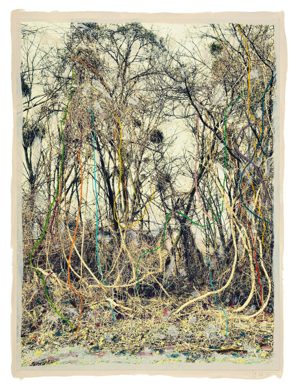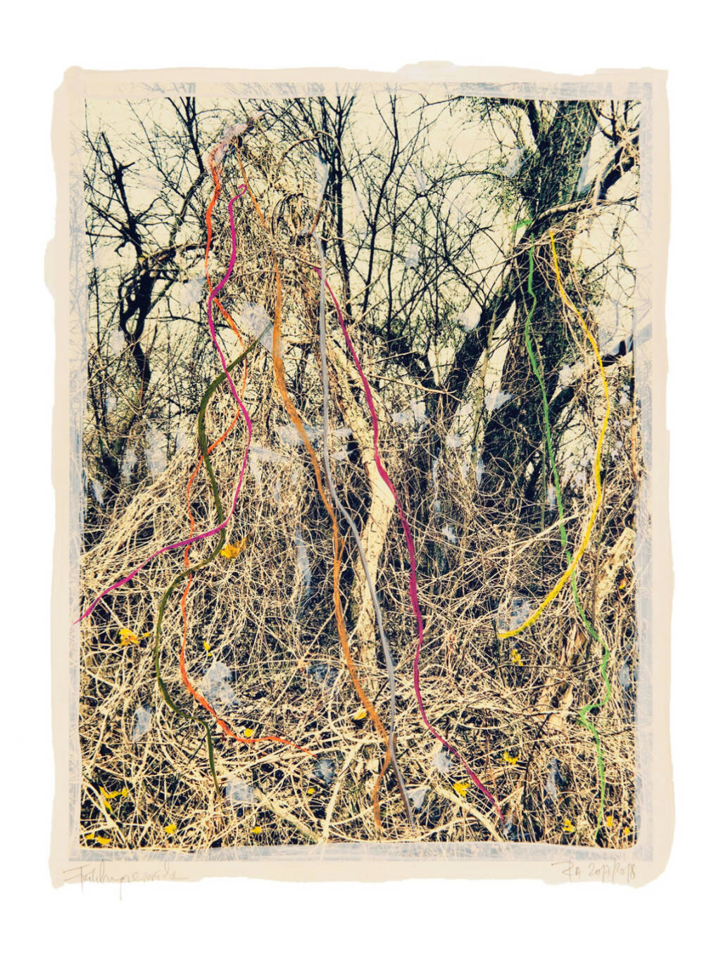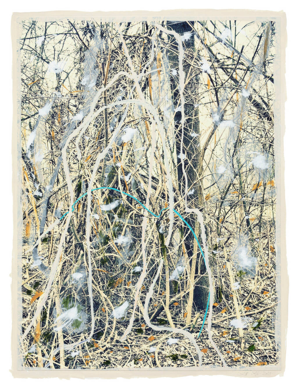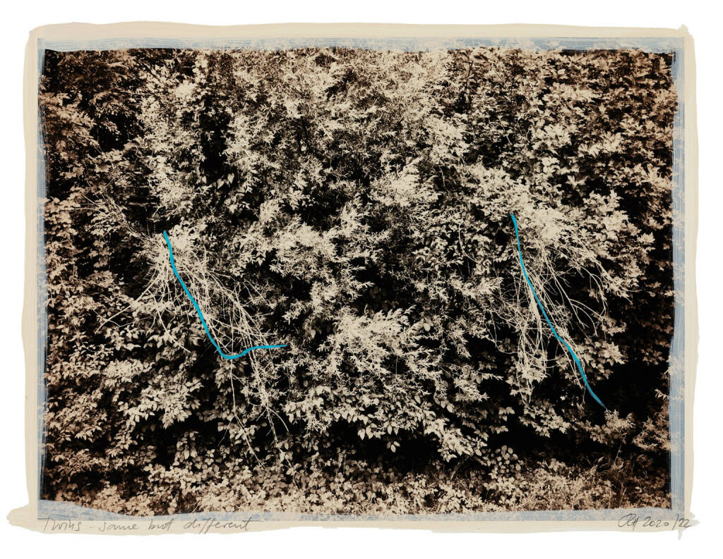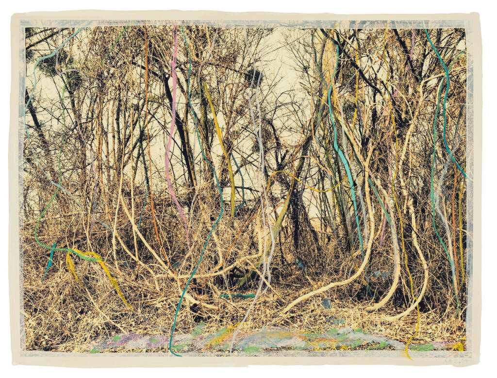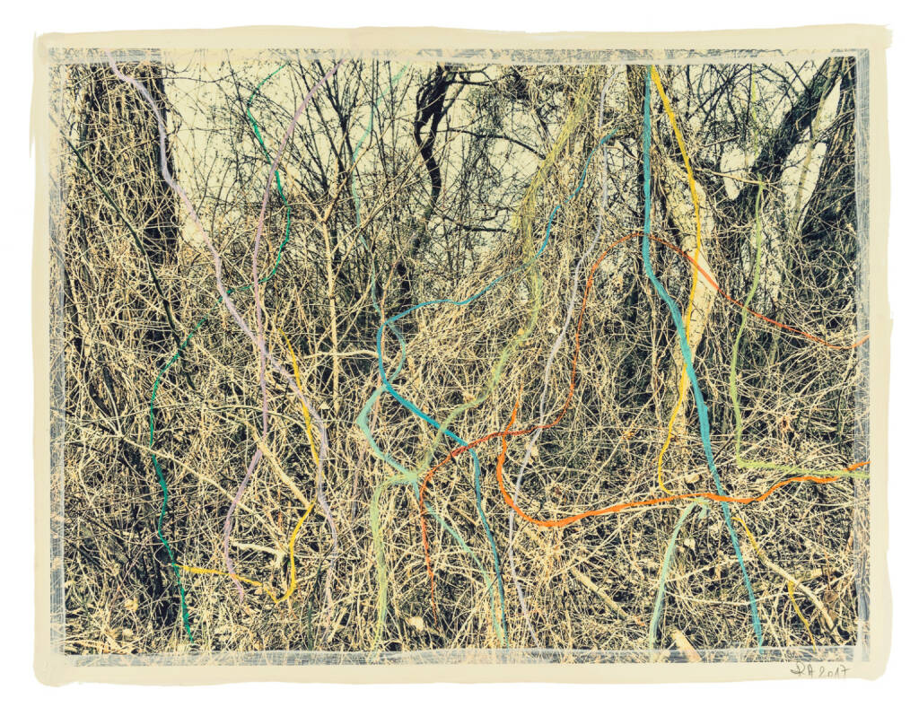 Regina Anzenberger Roots & Bonds V, 2016-2017 mixed media, photographic pigment print on Hahnemuehle PhotoRag Ultra Smooth, mounted on archival carton, acrylic painting, framed, museum glass, 70 % UV-protected (sold out), for the edition of 5 + II: pigment print on Hahnemuehle PhotoRag Ultra Smooth, not framed, 100 x 130 cm
