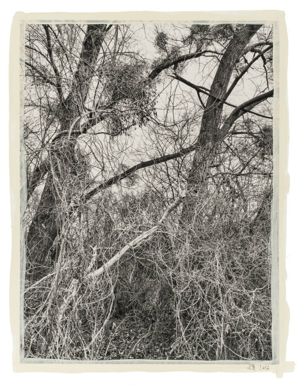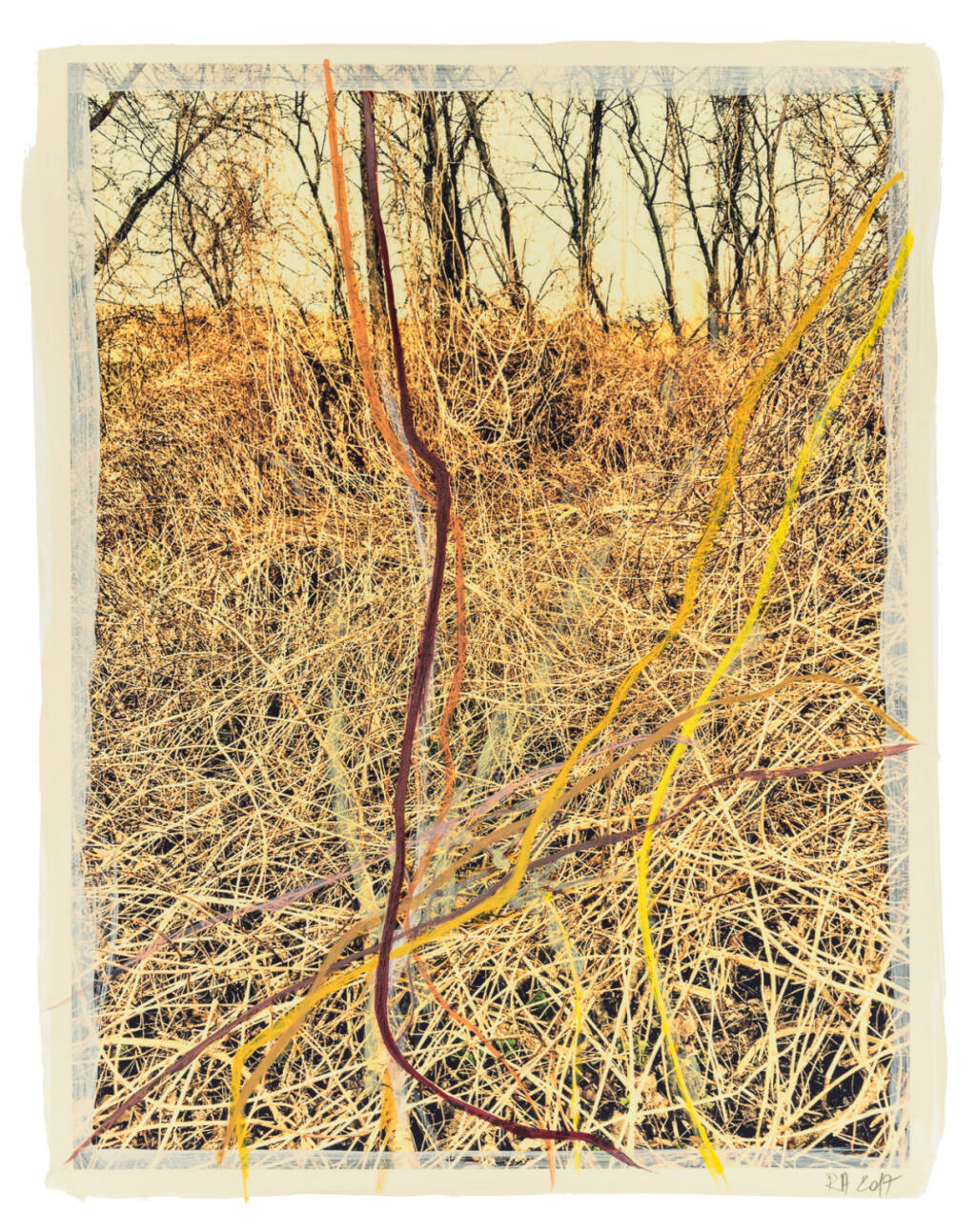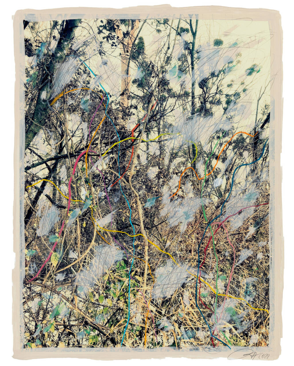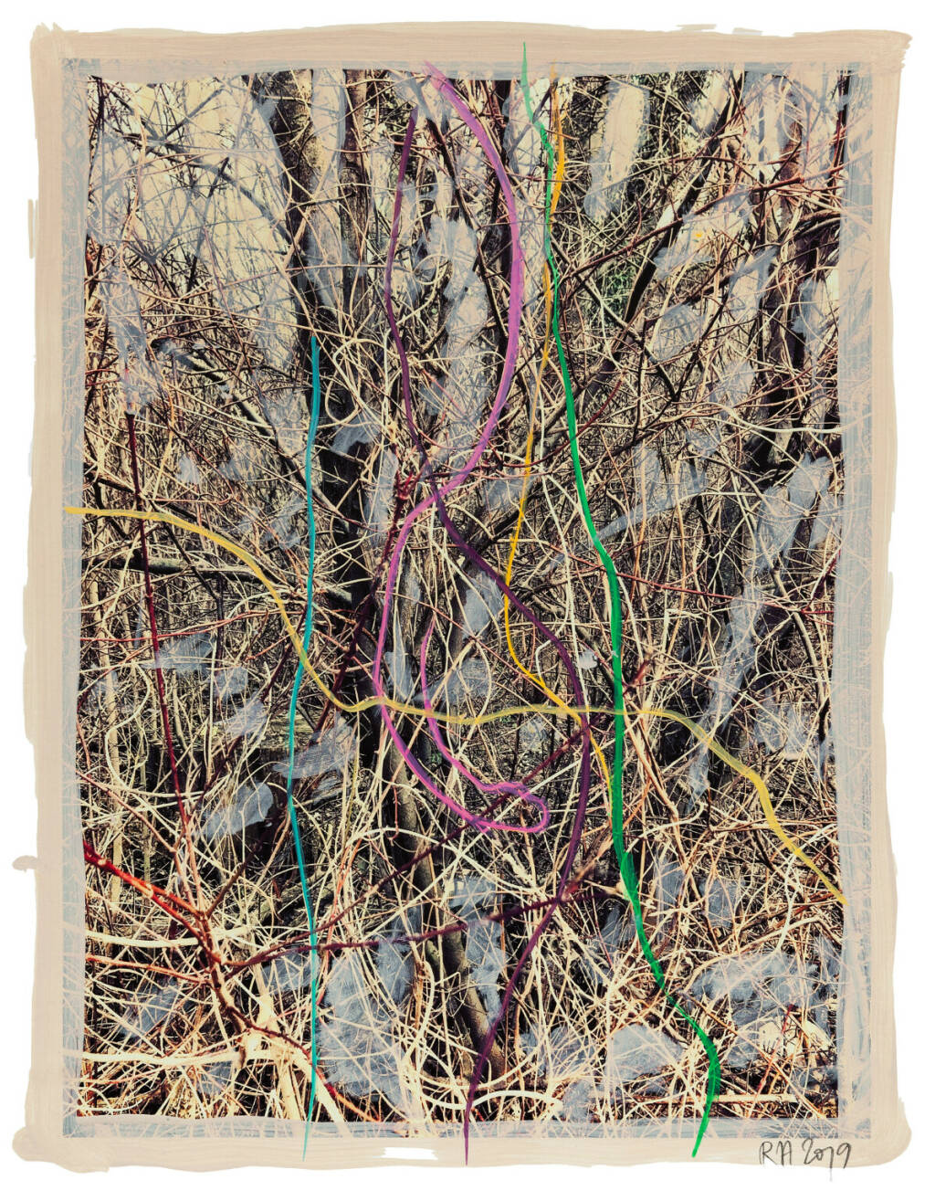 Regina Anzenberger Roots & Bonds V, 2016-2017 mixed media, photographic pigment print on Hahnemuehle PhotoRag Ultra Smooth, mounted on archival carton, acrylic painting, framed, museum glass, 70 % UV-protected (sold out), for the edition of 5 + II: pigment print on Hahnemuehle PhotoRag Ultra Smooth, not framed, 100 x 130 cm