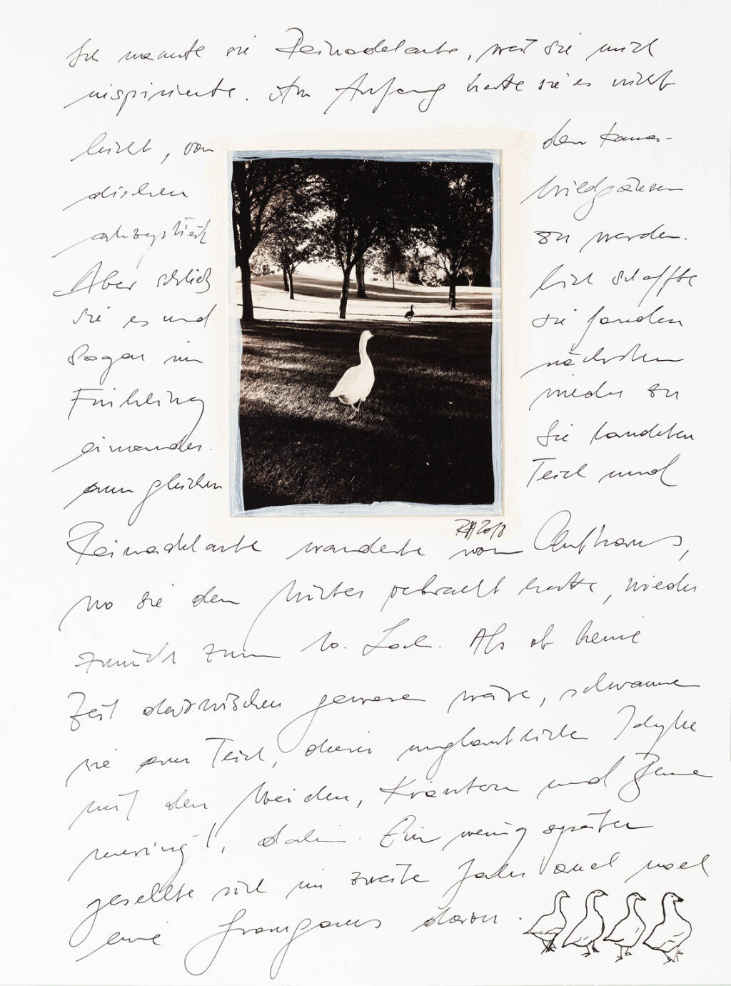 Regina Anzenberger Goosewalk I, 2015-2017 mixed media, photographic pigment print on Hahnemuehle PhotoRag Ultra Smooth, mounted on archival carton, acrylic painting, framed, museum glass, 70 % UV-protected, 24 x 30 cm (unframed reprint)