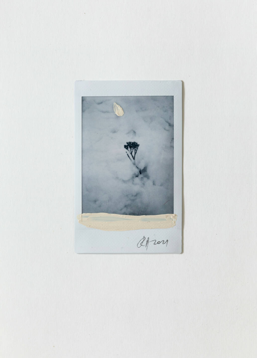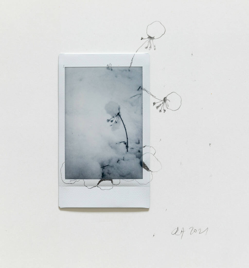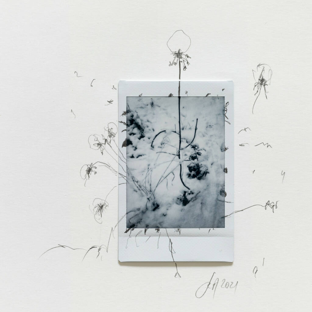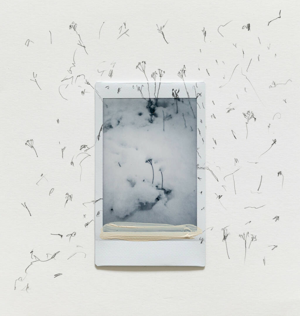 Regina Anzenberger Native Grounds II - 3, 2021/2022, from the series Gstettn mixed media, instant photography, pencil drawing, framed, 15 x 15 cm