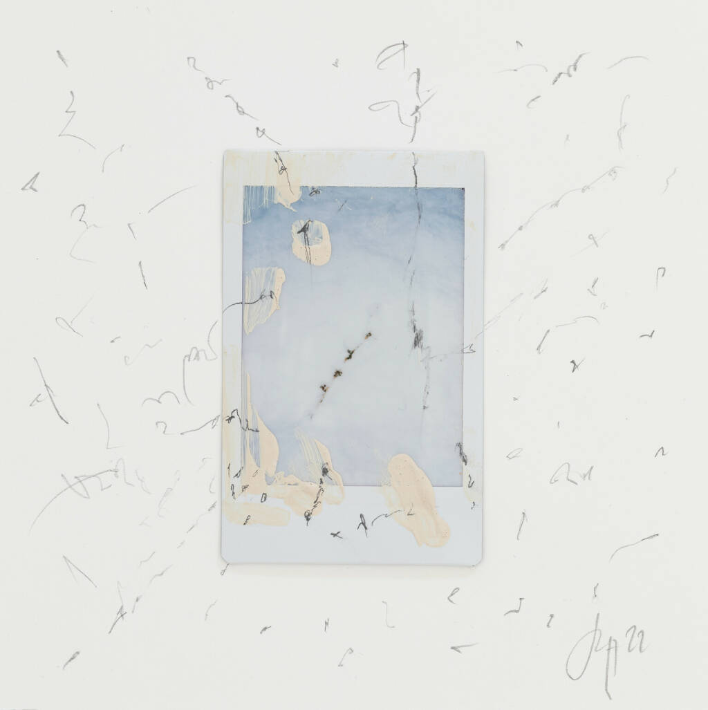 Regina Anzenberger Native Grounds II - 9, 2021/2022, from the series Gstettn mixed media, instant photography, pencil drawing, framed, 15 x 15 cm