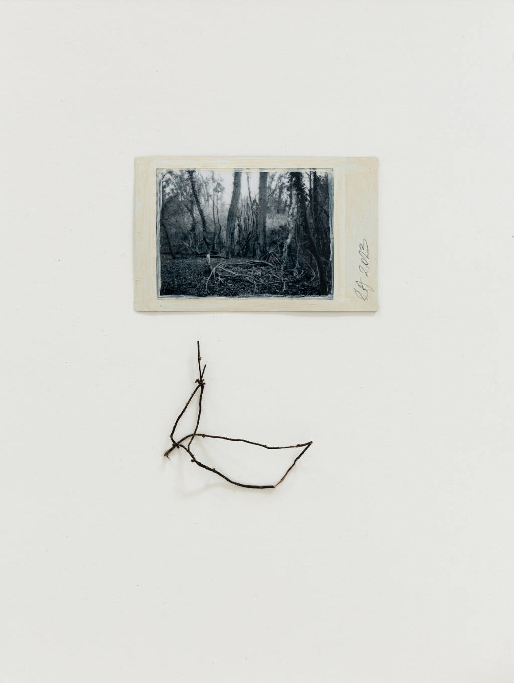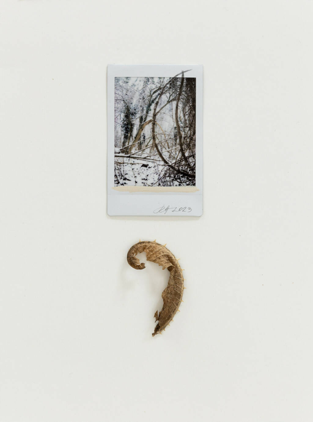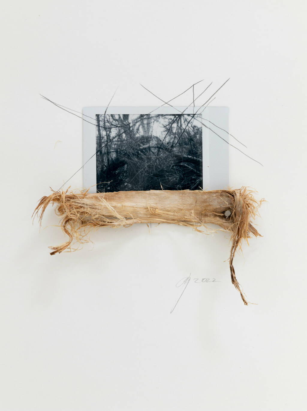 Regina Anzenberger Roots & Waltz (Native Grounds) II, 2023 mixed media, instant photograph, acrylic, pencil, found objects, 30 x 30 cm