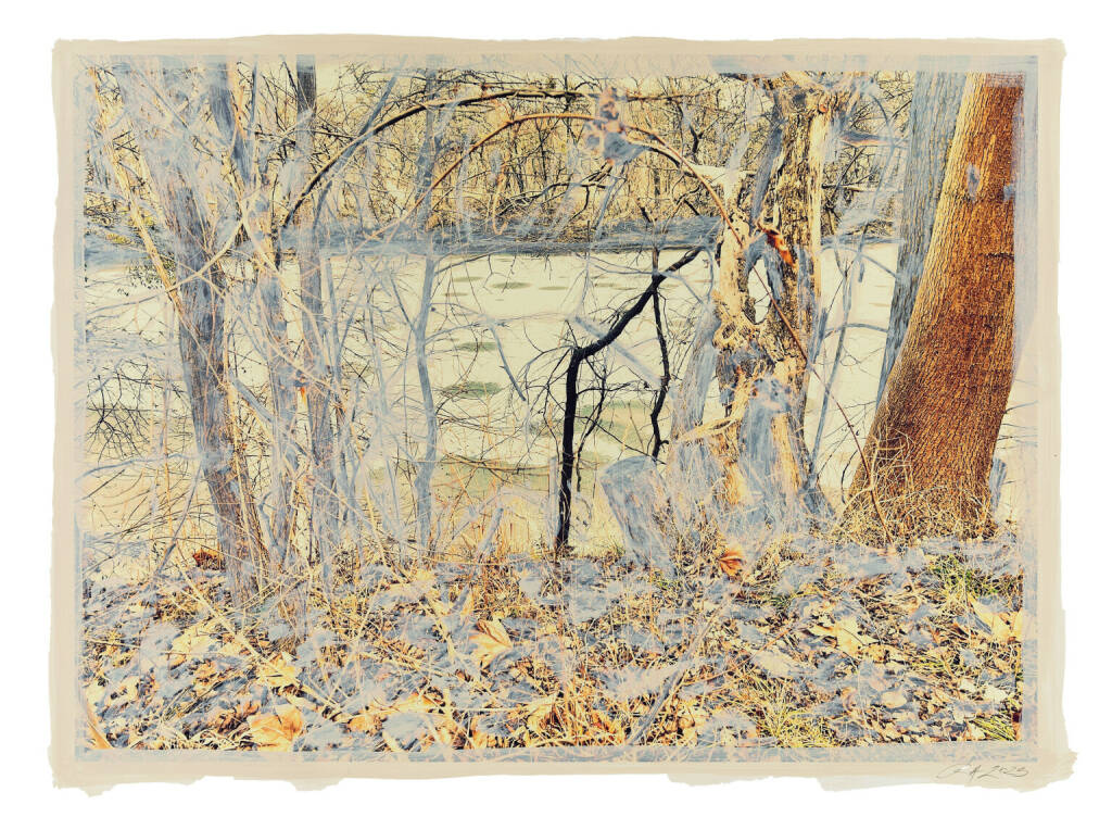 Regina Anzenberger Roots & Waltz I, 2021-2022 mixed media, pigment print on Hahnemühle PhotoRag Ultra Smooth, acrylic painting, pencil writing, 50 x 40 (reprint, unframed)