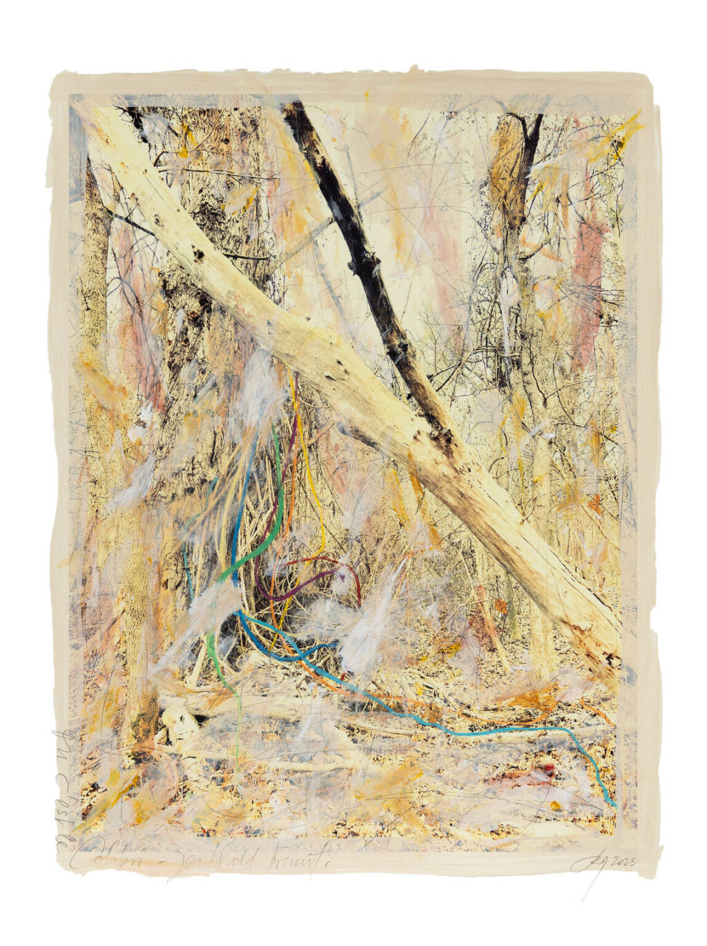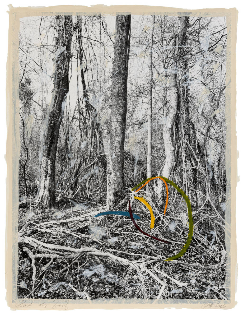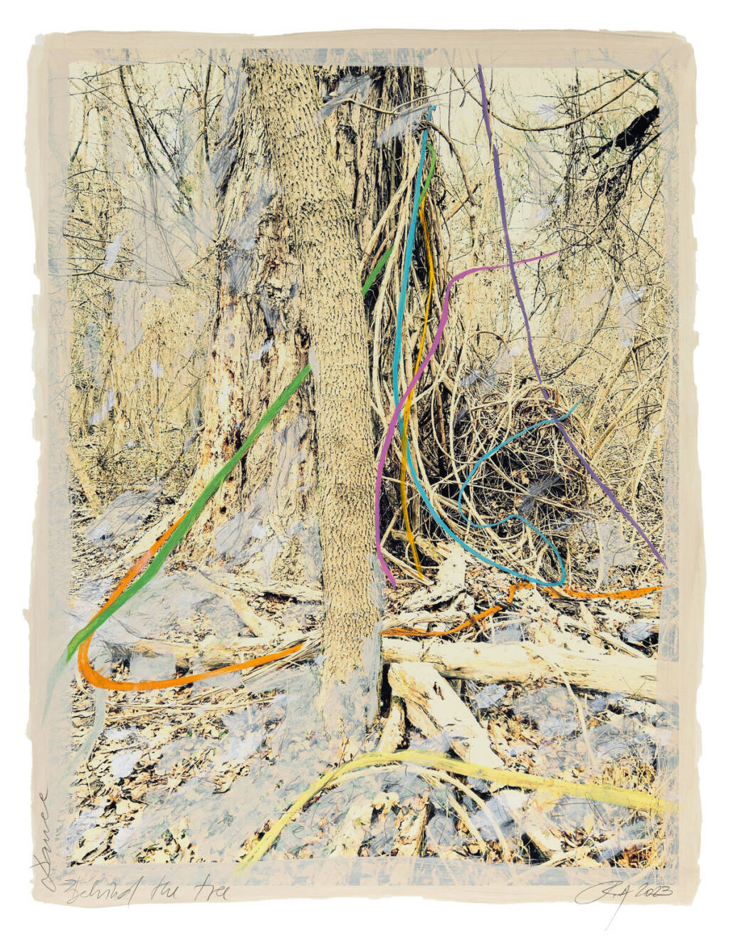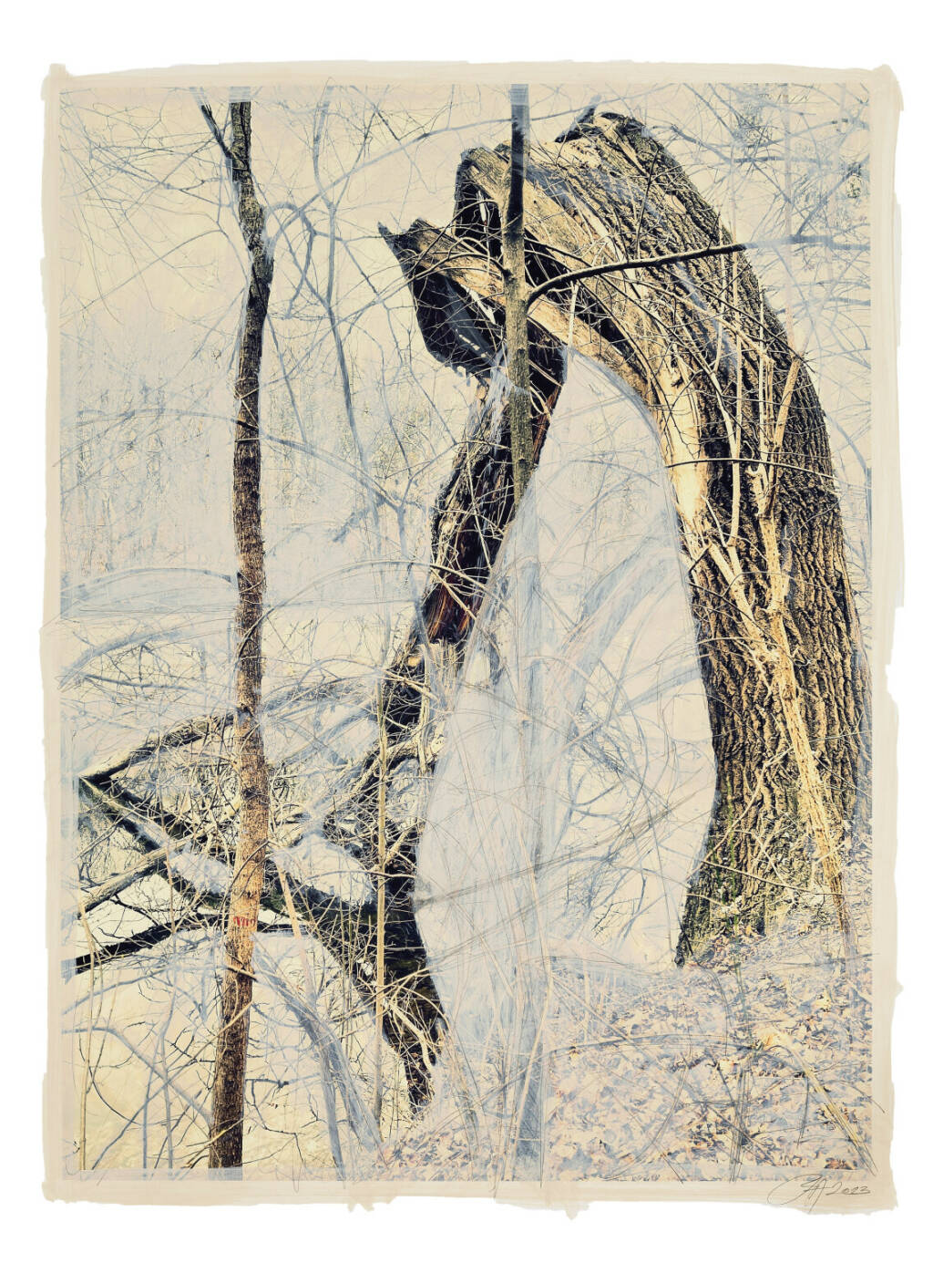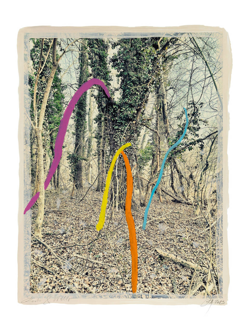 Regina Anzenberger Roots & Waltz XXII, 2023 mixed media, pigment print on Hahnemühle PhotoRag Ultra Smooth, acrylic painting, pencil, 53 x 40,5 cm