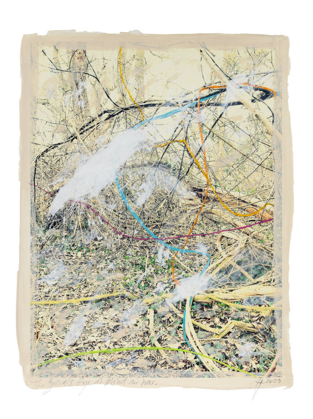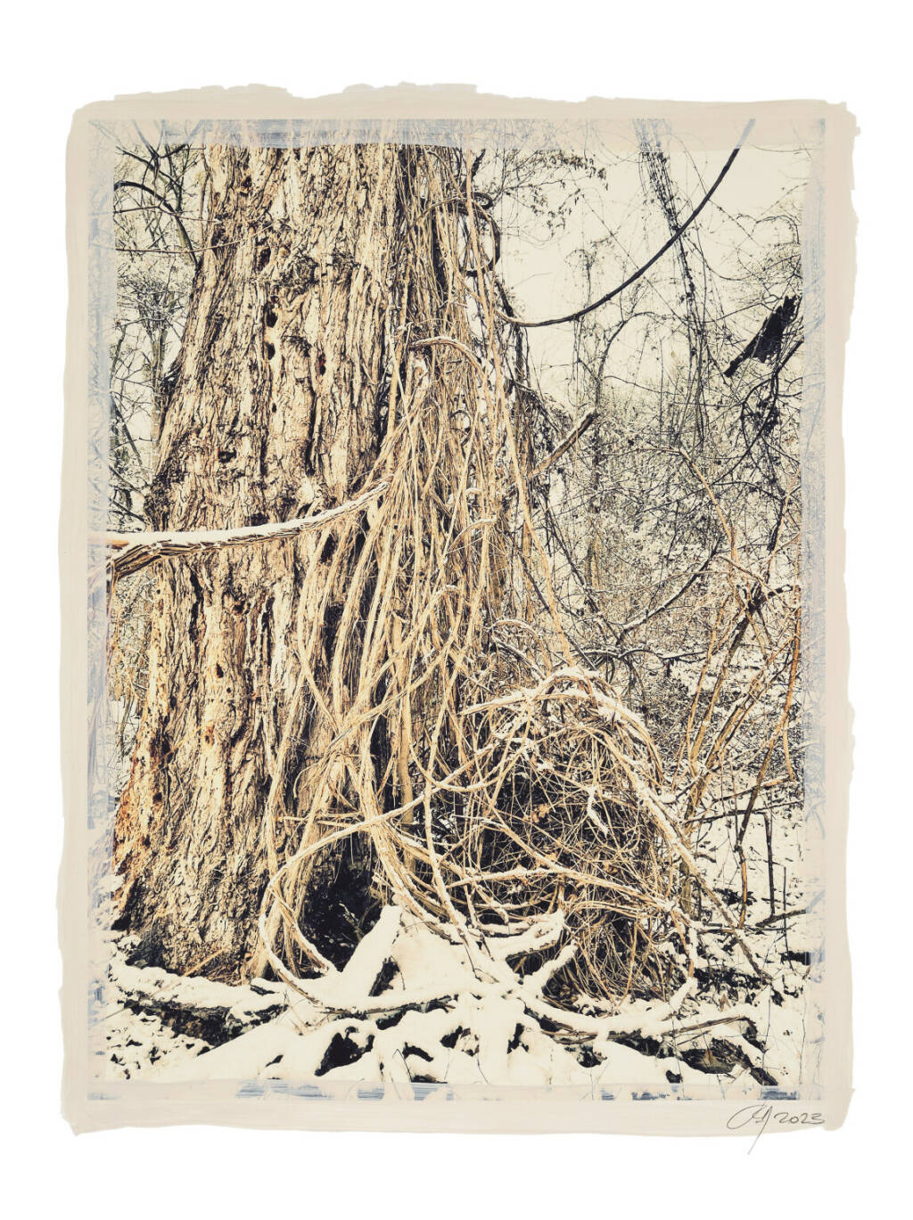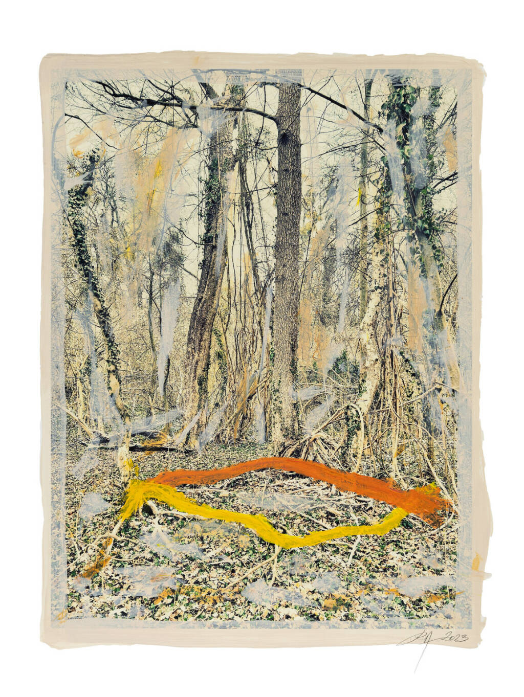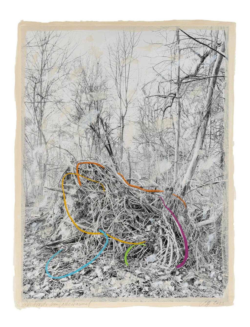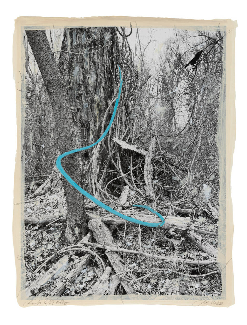 Regina Anzenberger Roots & Waltz XXXII, 2023 mixed media, pigment print on Hahnemühle PhotoRag Ultra Smooth, acrylic painting, pencil, 80 x 60 cm