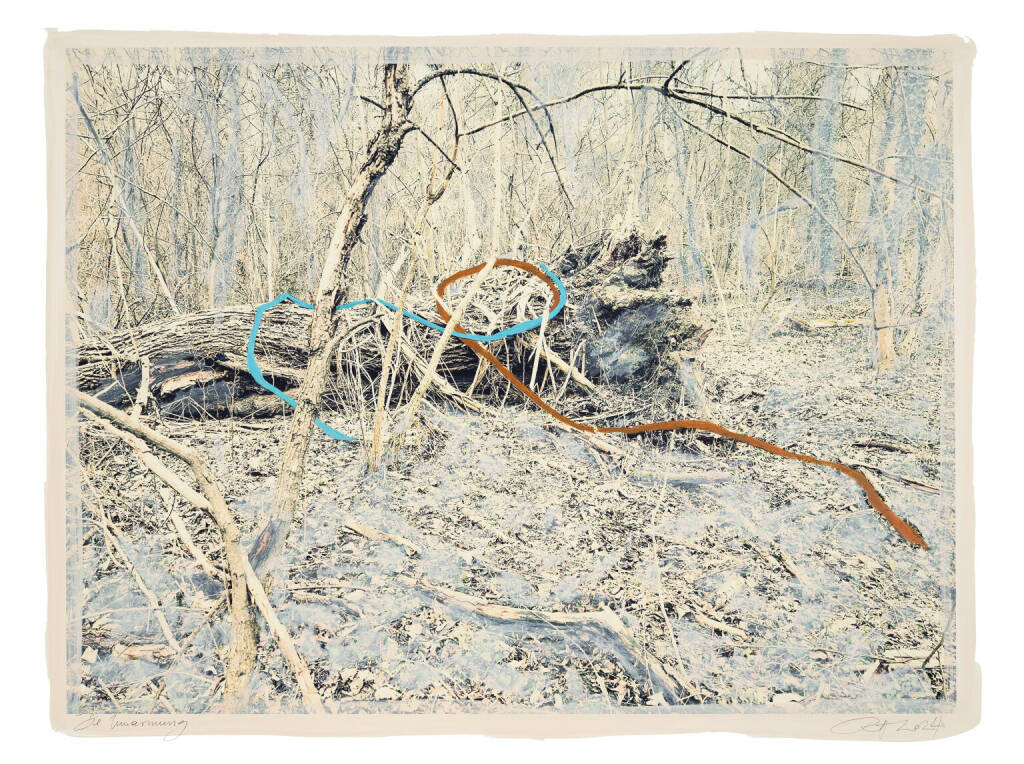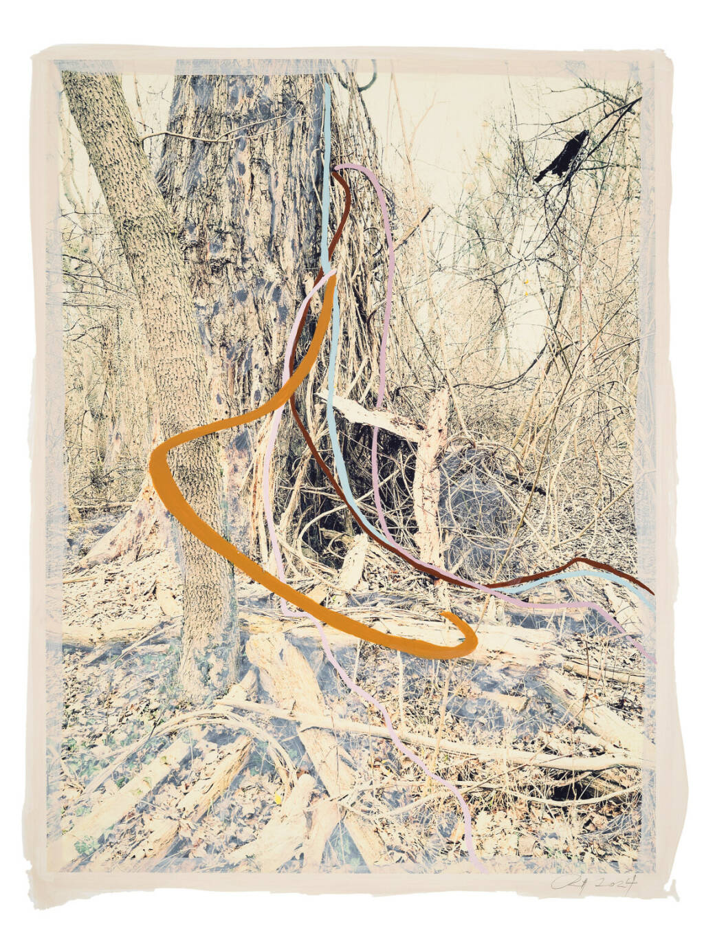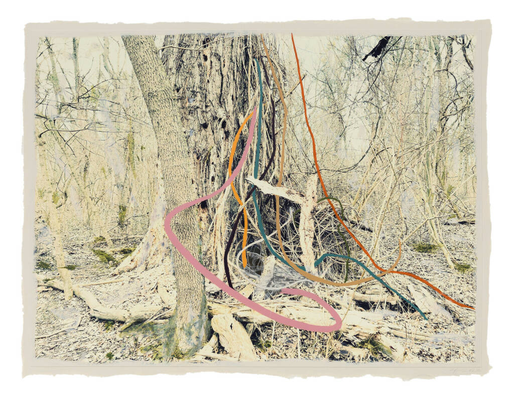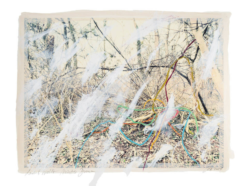 Regina Anzenberger Roots & Waltz 42, 2024 mixed media, pigment print on Hahnemühle PhotoRag Ultra Smooth, acrylic painting, pencil, 60 x 80 cm