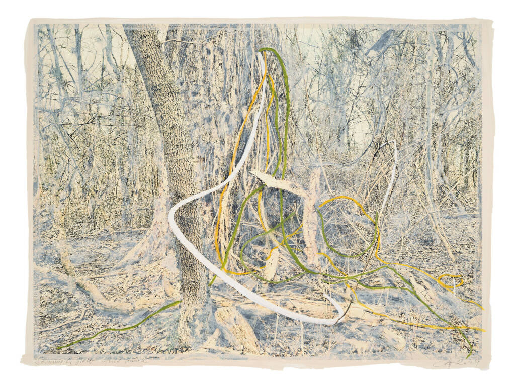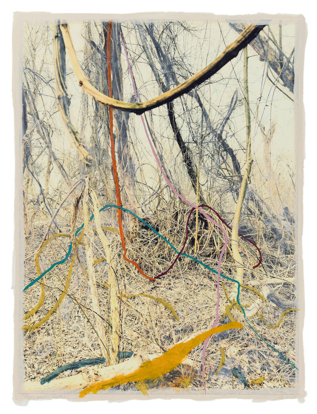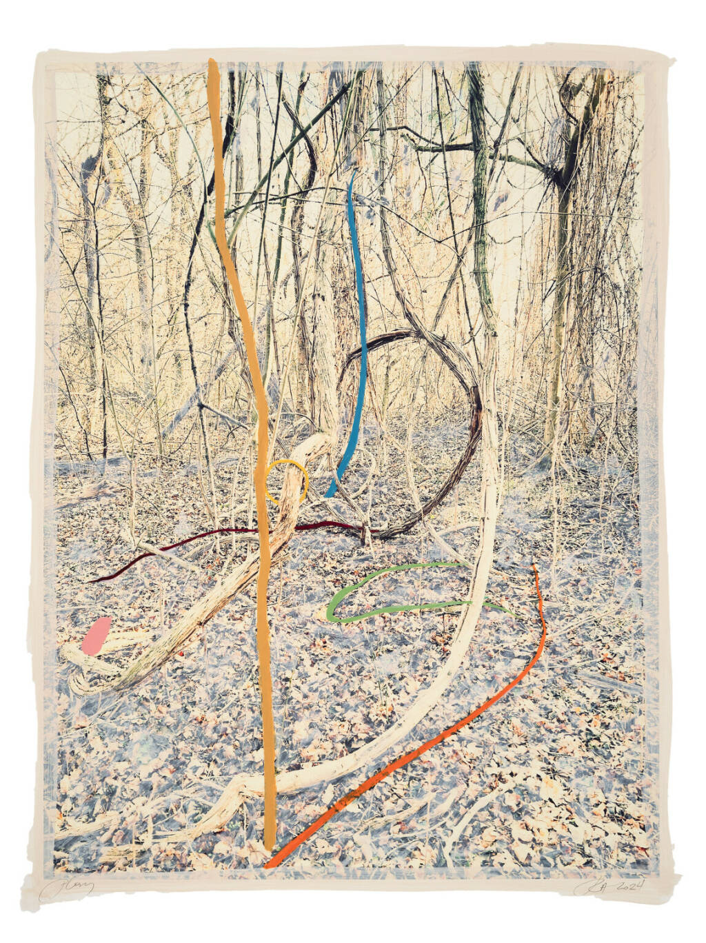 Regina Anzenberger Roots & Waltz 42, 2024 mixed media, pigment print on Hahnemühle PhotoRag Ultra Smooth, acrylic painting, pencil, 60 x 80 cm