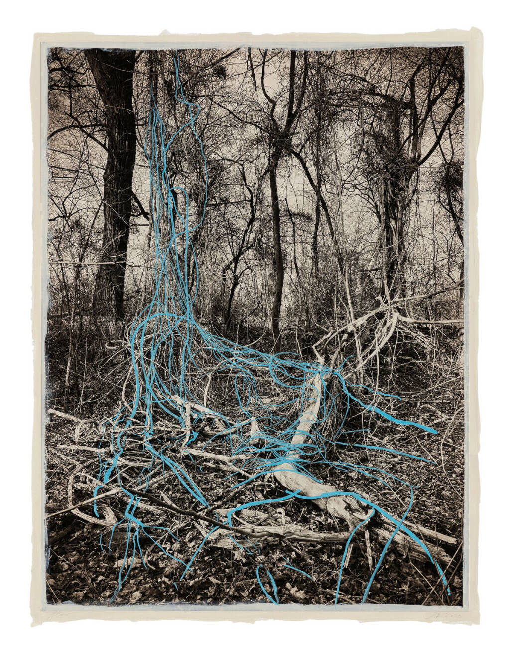 Regina Anzenberger Roots & Waltz XXI, 2023 mixed media, pigment print on Hahnemühle PhotoRag Ultra Smooth, acrylic painting, pencil, 53 x 40,5 cm