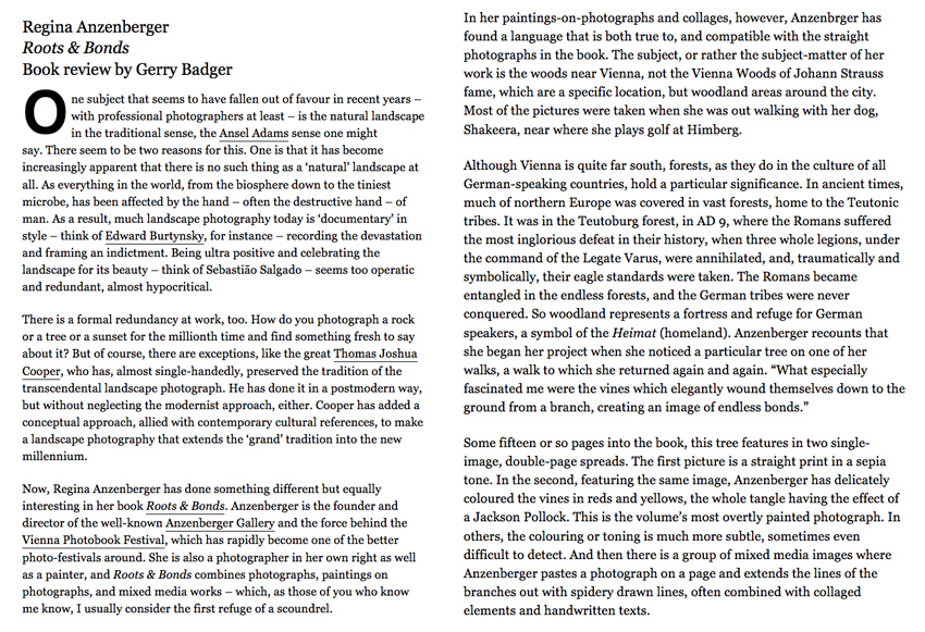 1000 words magazine - review by Gerry Badger about Regina Anzenbergers book 'Roots & Bonds'