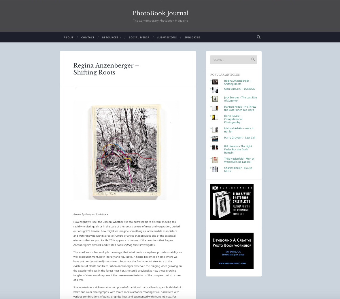 PhotoBook Journal, USA, August 2020, about the book SHIFTING ROOTS.