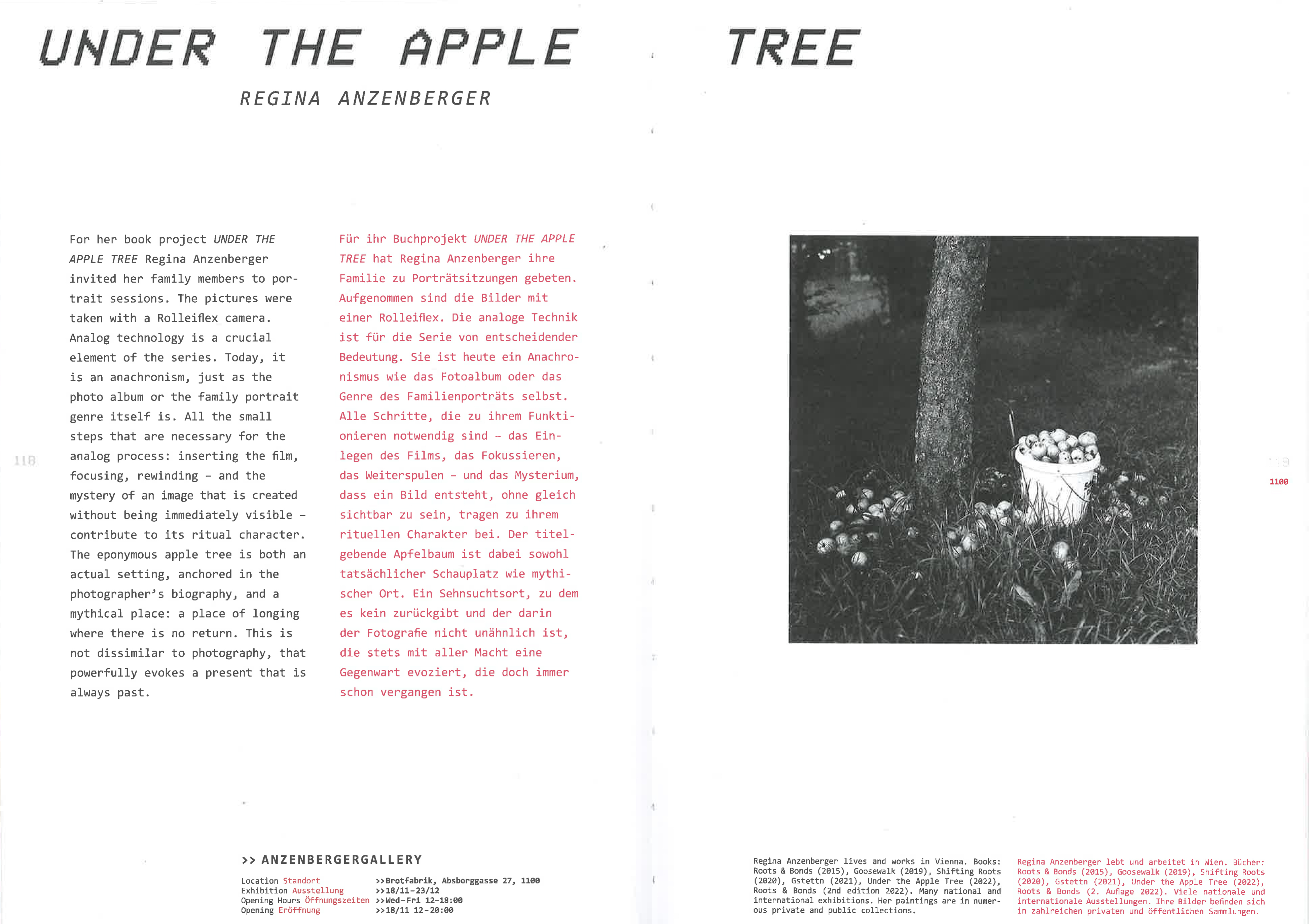 ROTLICHT Festival for analog photography on occasion of the exhibition UNDER THE APPLE TREE at AnzenbergerGallery from November 18 to December 23, 2022