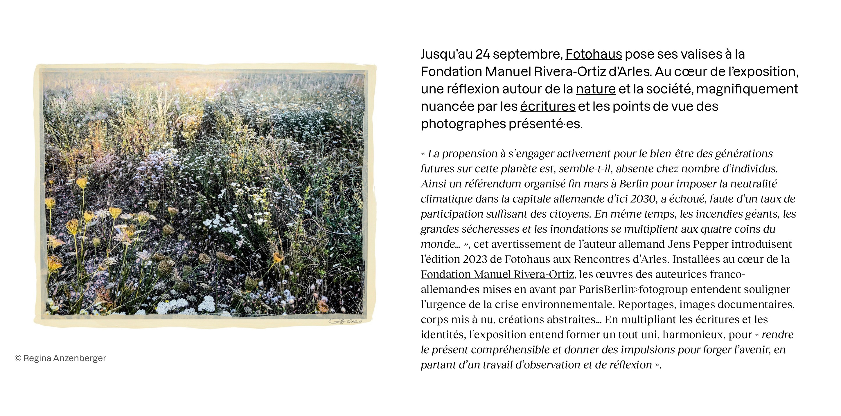 fotoTV Germany, July 2022, interview with Regina Anzenberger on occasion of the exhibition SHIFTING ROOTS at Fotohaus/Fondation Manuel Rivera-Ortiz /ARLES Rencontres de la Photographie.