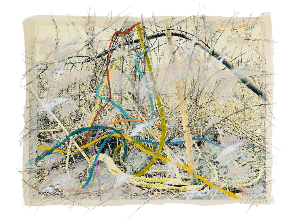 Regina Anzenberger Roots & Waltz 42, 2024 mixed media, pigment print on Hahnemühle PhotoRag Ultra Smooth, acrylic painting, pencil, 60 x 80 cm