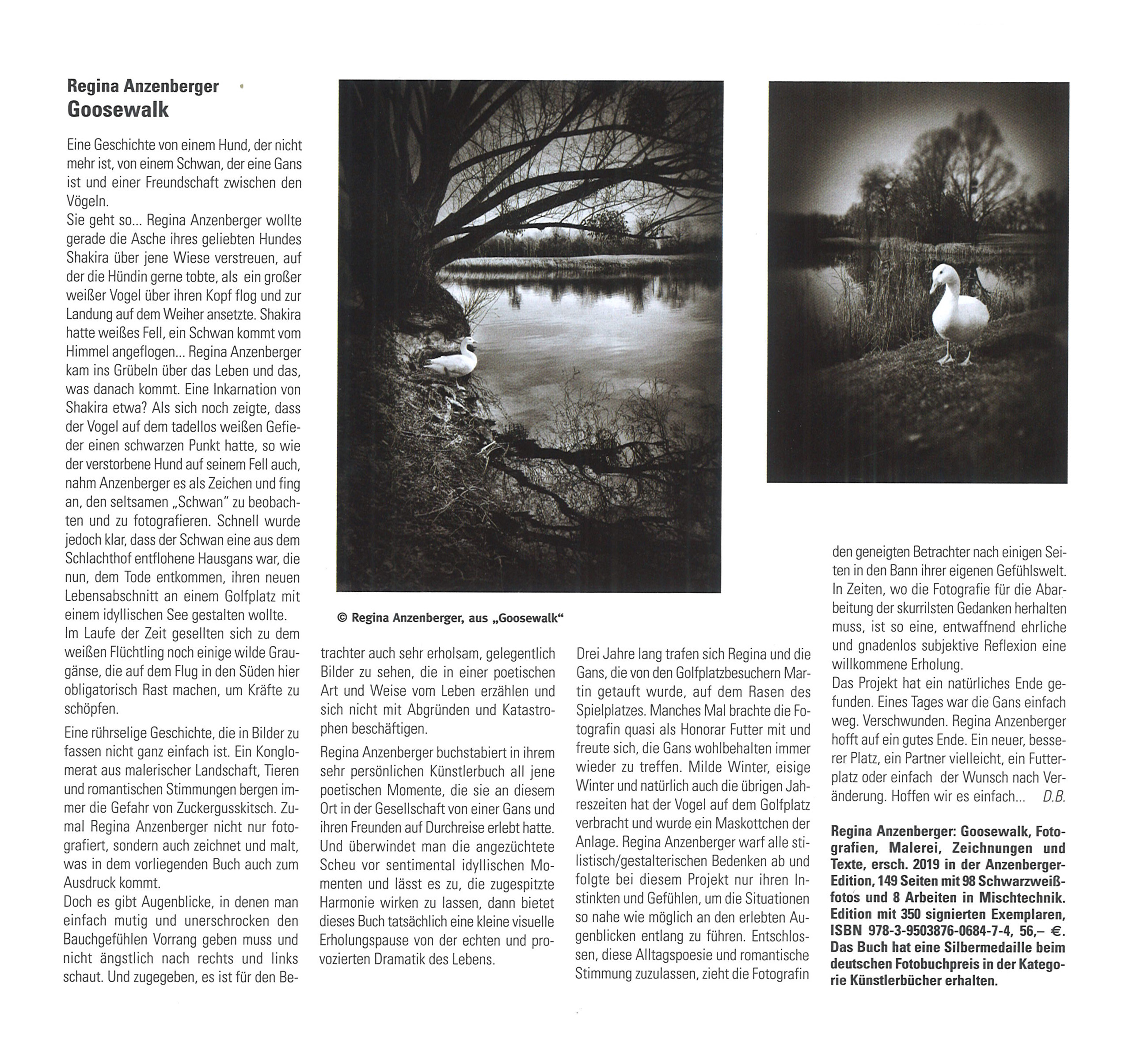 PHOTONEWS 3/20 about Regina Anzenberger's photobook GOOSEWALK