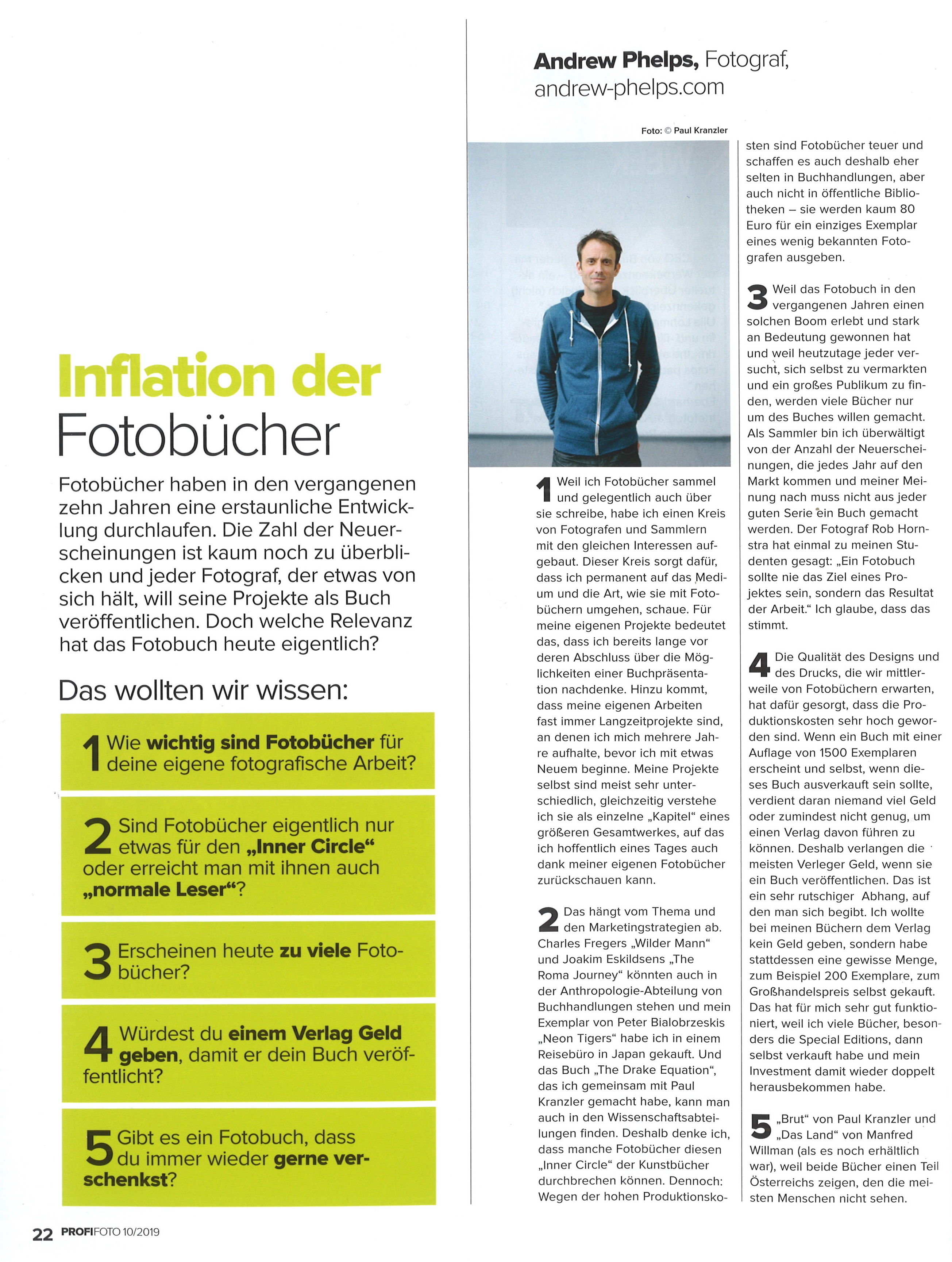 PROFIFOTO, Nr. 10, Oktober 2019 - Interview with Regina Anzenberger about Photobooks