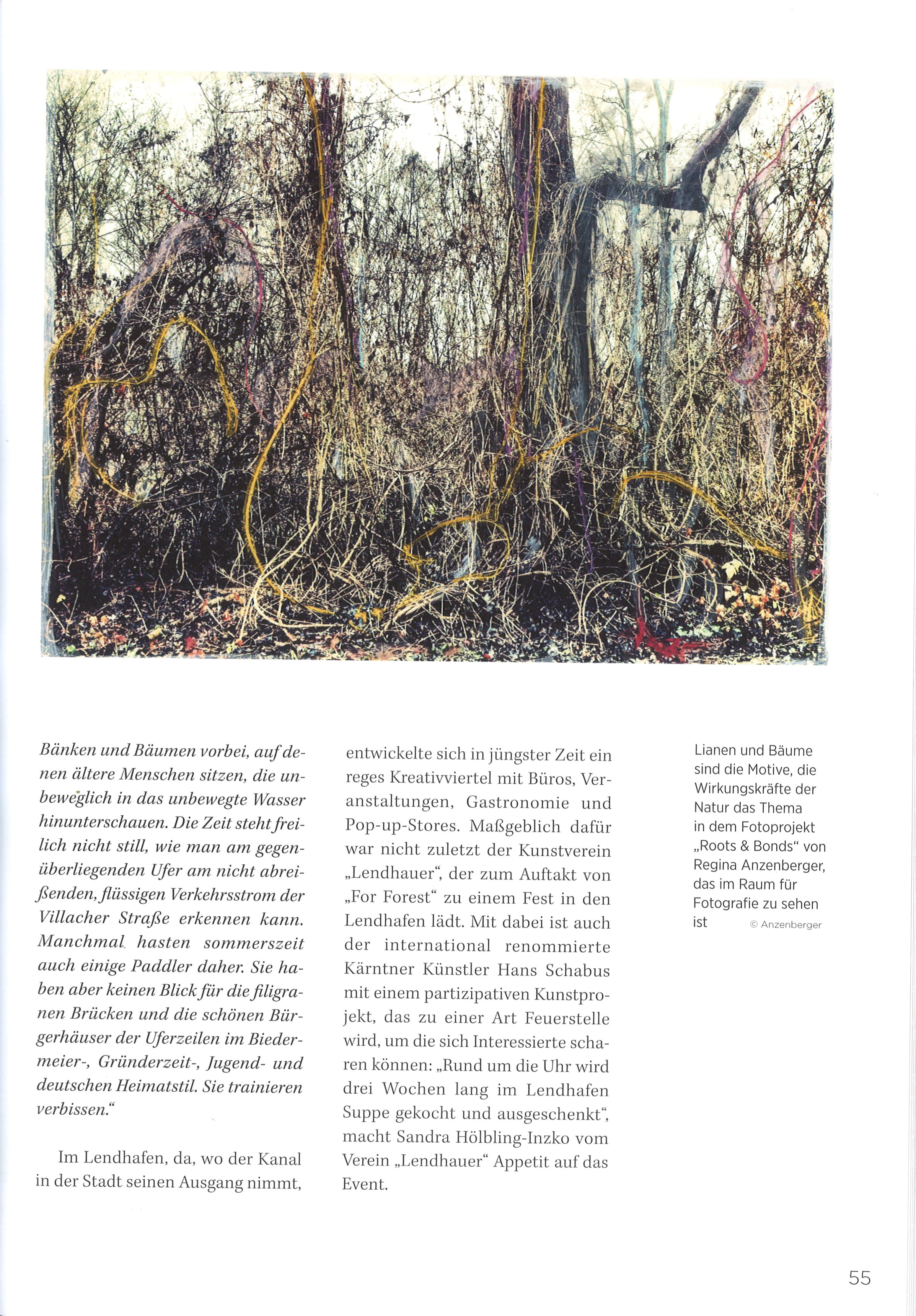 Kleine Zeitung Special Edition for the program of FOR FOREST about Regina Anzenberger's exhibition ROOTS & BONDS