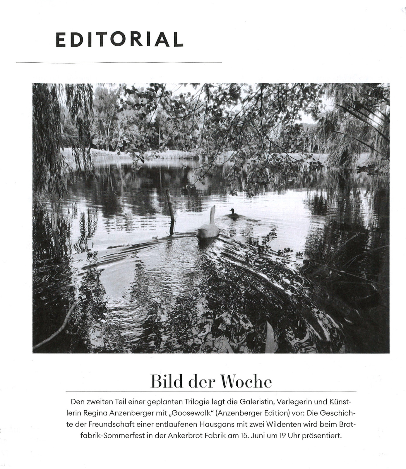 Die Presse Schaufenster about the exhibition and book GOOSEWALK by Regina Anzenberger