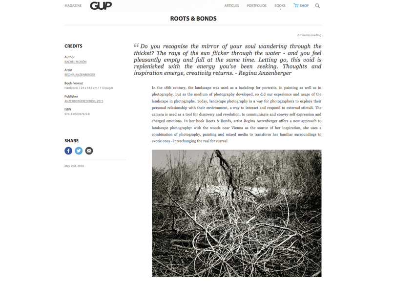 GUP Magazine - review by Rachel Morón about Regina Anzenbergers book 'Roots & Bonds'