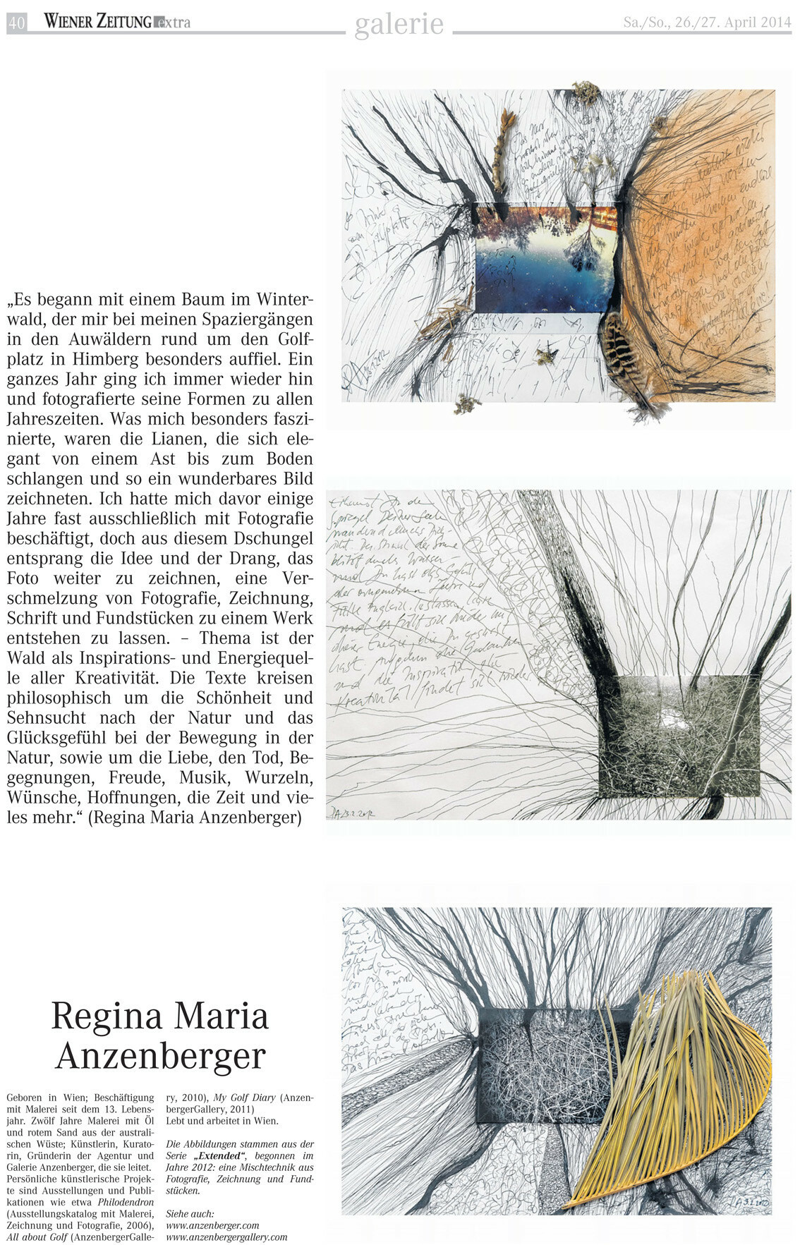 Wiener Zeitung, April 26/27, 2014 about the series 'extended' by Regina Maria Anzenberger