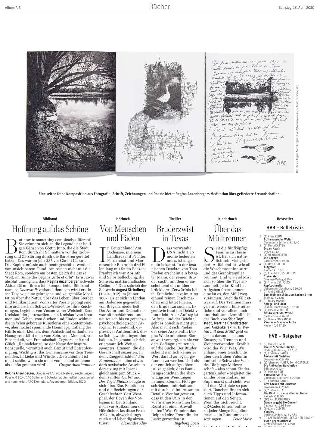 DER STANDARD Album 18./19.4.2020 about Regina Anzenberger's photobook GOOSEWALK