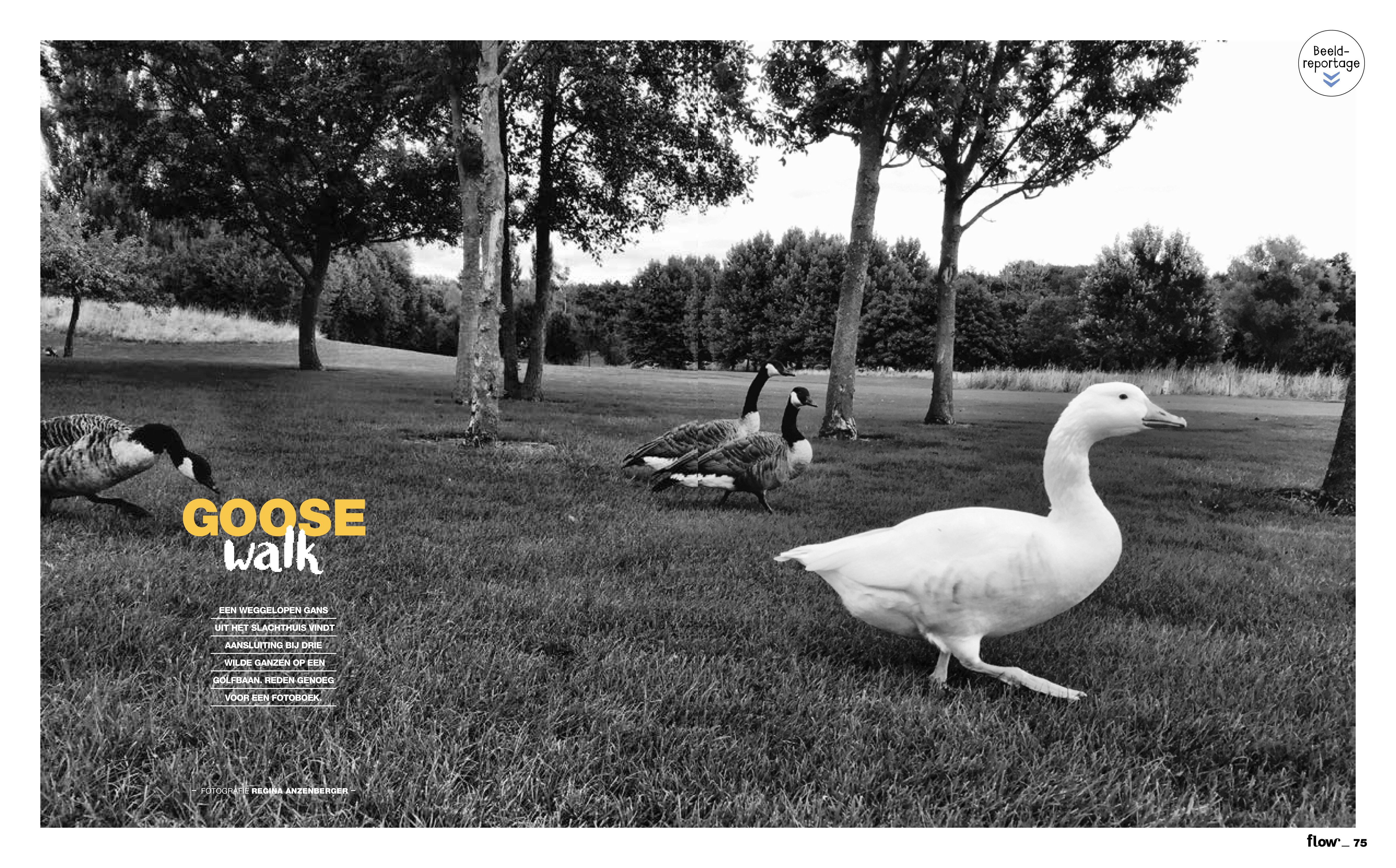 flow magazine, Netherlands, July 2020, about Regina Anzenberger's photobook GOOSEWALK