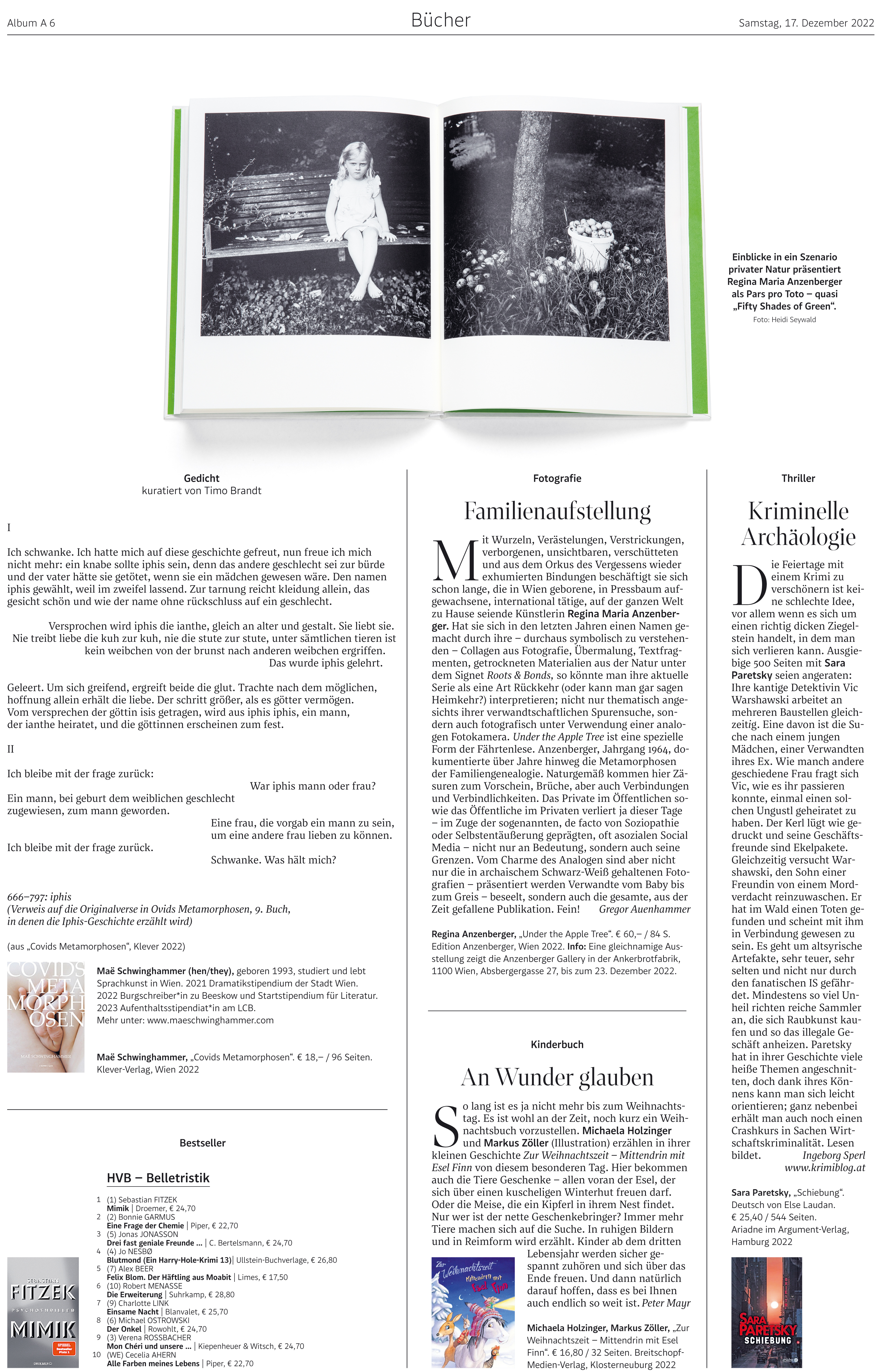 Der Standard Album, 17./18.12.2022, Austria, about the book and exhibition UNDER THE APPLE TREE